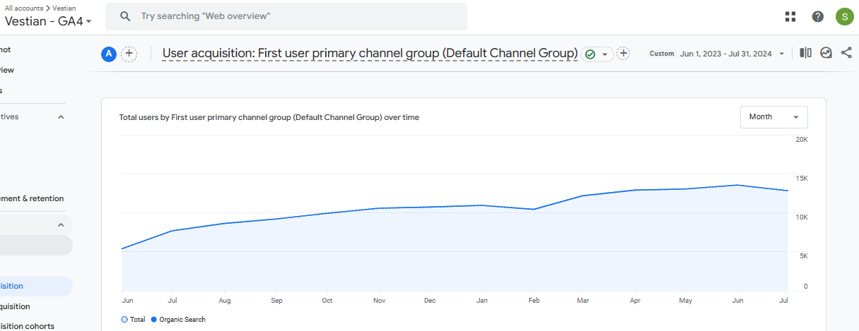 To analyse and improve the organic search performance, user engagement, and lead generation of the Vestian Indian website.
